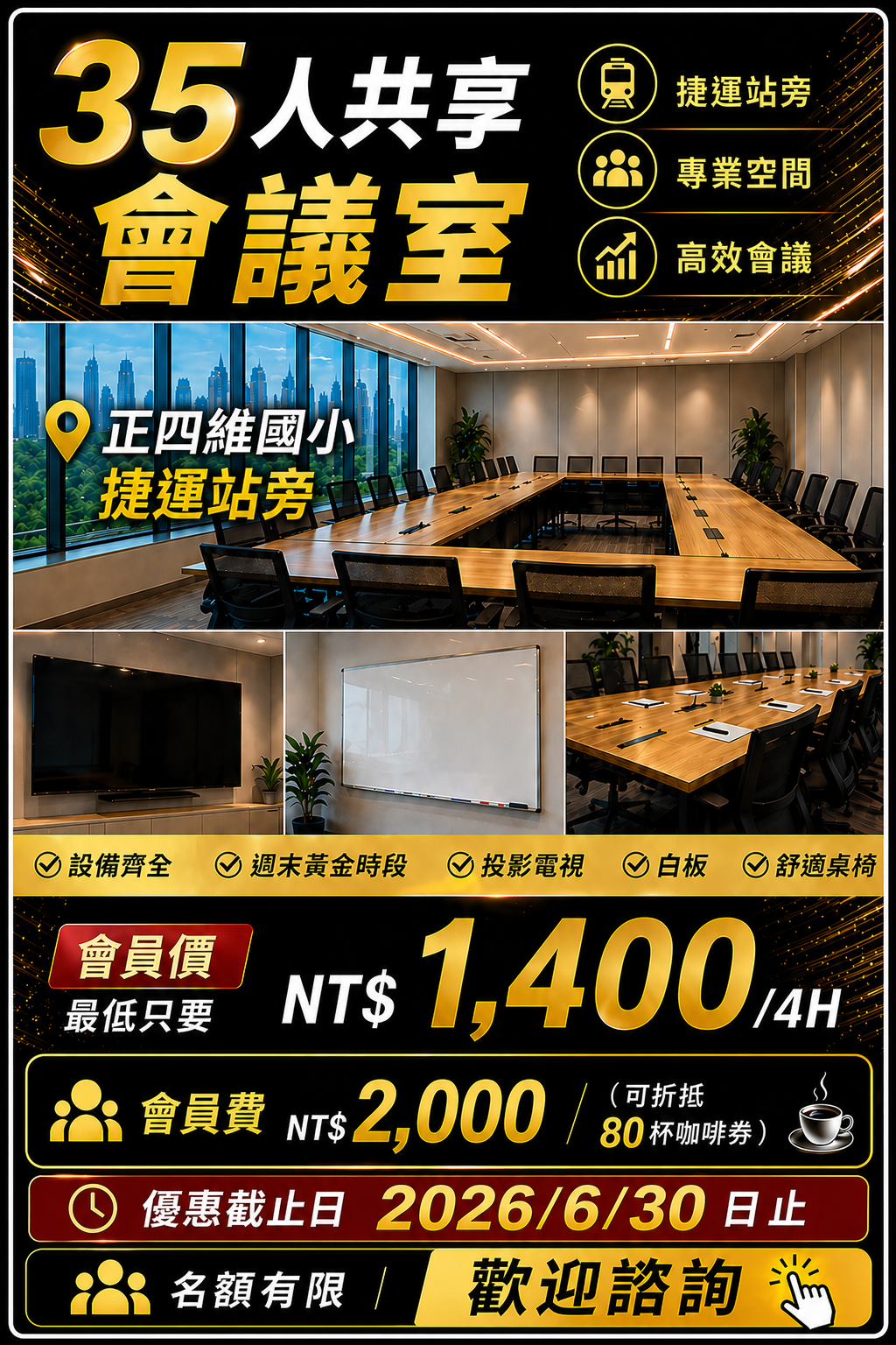捷運站旁真的很方便,客戶來開會都說好找。會議室乾淨整潔,設備齊全,推薦!