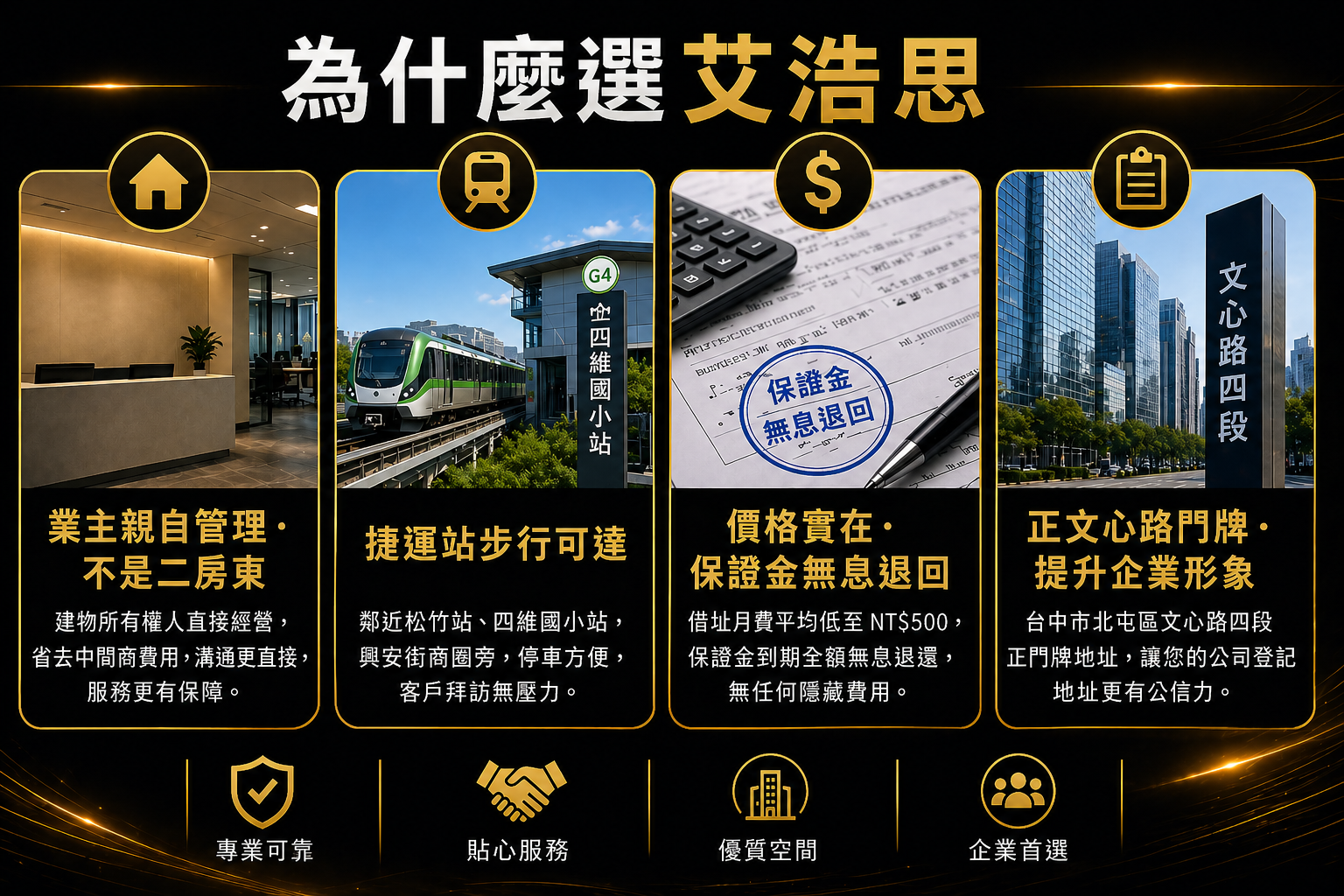 借址費用比其他地方便宜很多,而且是業主自己管,信件都處理得很即時,很放心。